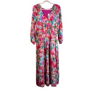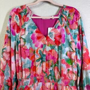 SOFT SURROUNDINGS Dress Medium Evalina Tropical Floral Smocked Waist Lined NWT - Retail $160