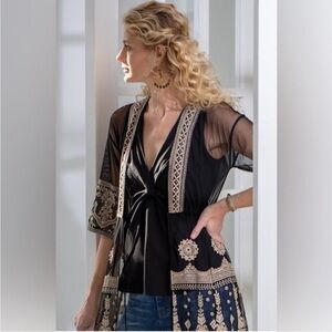 SOFT SURROUNDINGS Erika Black Sleeveless Blouse with twist front Small V-Neck