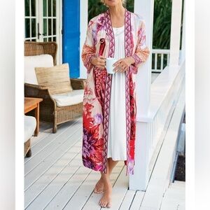 SOFT SURROUNDINGS Faye Silk Blend Peacock Robe Size M NEW