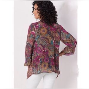 Exotic jeweled tone florals in an open-front georgette lightweight kimono style topper. Rich tones perfect for fall wear! Beautiful beaded topper.