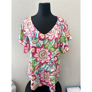 SOFT SURROUNDINGS | Floral Paisley V-Neck Flutter Sleeve Elana Tunic | Large