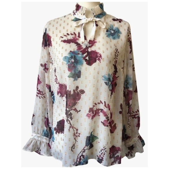 SOFT SURROUNDINGS Floral Ruffle Bohemian Sheer Blouse. Size M
