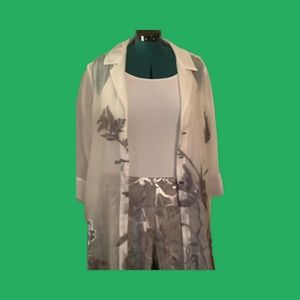 TO PAIR WITH CHICO’S GREY AND SILVER DUSTER OR ALONE, THESE LEGGINGS ARE GREY WITH SILVER ACCENTS, SIZE 1X. NEVER WORN AND MINT CONDITION.