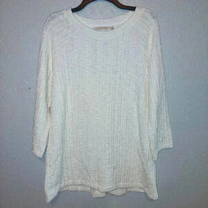 SOFT SURROUNDINGS Goldie Cream Textured Back Button Detail Tunic Top ~ M