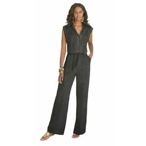 SOFT SURROUNDINGS Gray Camilla Tie-Waist Jumpsuit