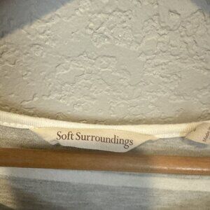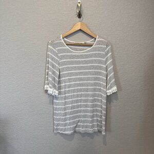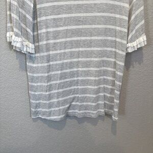 SOFT SURROUNDINGS Gray White stripes short ruffle sleeves tunic top Small