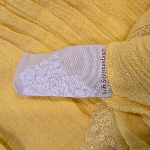 SOFT SURROUNDINGS LEMON YELLOW GLAM GAUZE PLEATED EYELET BLOUSE. SIZE LARGE.