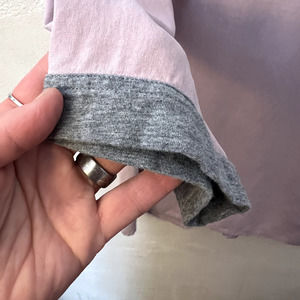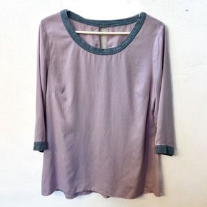 SOFT SURROUNDINGS Light Purple Silk Blouse 3/4 Sleeve Gray Trim Keyhole Medium