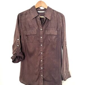 SOFT SURROUNDINGS Long Sleeve Cozy Fall Transitional Button Down Pockets Top