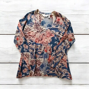 SOFT SURROUNDINGS Millie Tunic Knit Top Floral Bird Shirt Blouse Small High Low