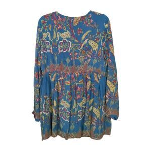 SOFT SURROUNDINGS Mirapani Tunic Blue red Boho Print Embroidered Women's Large