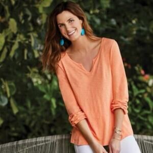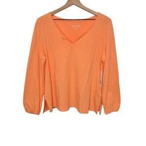 SOFT SURROUNDINGS NWT Women's Lar Hepburn Top V Neck Long Sleeve Cadmium Orange