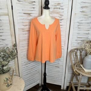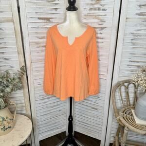 - SOFT SURROUNDINGS NWT Women's Large Hepburn Top V Neck Long Sleeve Cadmium Orange -