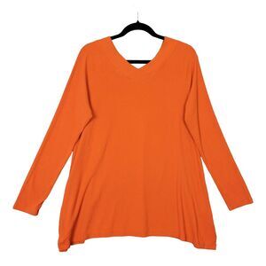 SOFT SURROUNDINGS Orange Double V Timely Tee Long Sleeve Pima Top SIZE LARGE