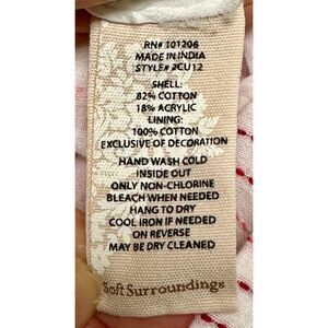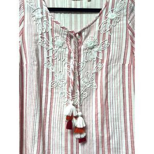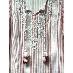 SOFT SURROUNDINGS Red/White Striped Embroidered Tunic, Sz M