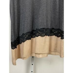 SOFT SURROUNDINGS S Short Sleeve Knit Top Lace Satin Hem Mixed Media Shirt Gray
