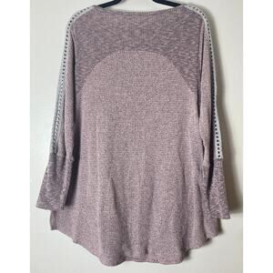 SOFT SURROUNDINGS SWEATER TOP XL BAILEY LONG SLEEVE SHIRT EMBROIDERED THERMAL KNIT LONG LIGHT PURPLE - PINK AND GRAY CURVE HEM