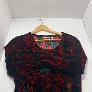 SOFT SURROUNDINGS Santiago Floral Red Black Velvet Maxi Dress Size PXL. Newish condition. Stretchy. Msrp $120