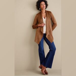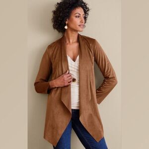 SOFT SURROUNDINGS Open Front Long Sleeve Faux Suede Drape Jacket