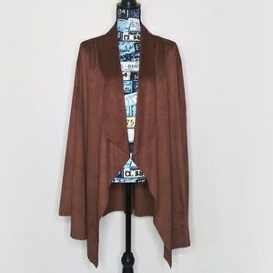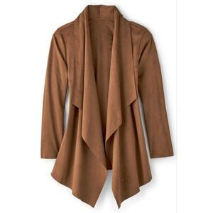 SOFT SURROUNDINGS Shape Drape Open Front Faux Suede Jacket Saddle Brown Sz 3X