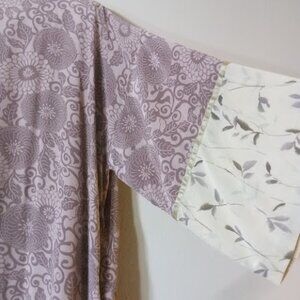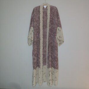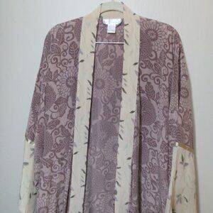 SOFT SURROUNDINGS Silk Open Front House Robe Floral Kimono Duster Boho Cover Up
