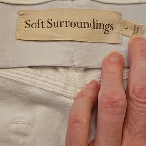 SOFT SURROUNDINGS Stretch Pull-on Pant White Crop Sz L Elastic Waist Career