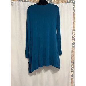 SOFT SURROUNDINGS TURQUOISE Soft Knit Top Long Slv Scoop Neck Tunic Top Knit Sz