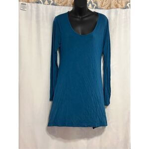 SOFT SURROUNDINGS TURQUOISE Soft Knit Top Long Slv Scoop Neck Tunic Top Knit Sz medium Good CONDITION
