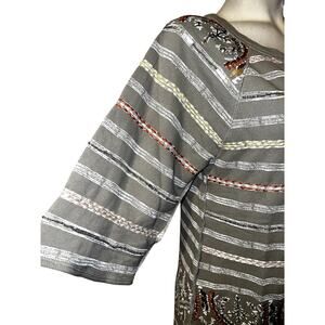 SOFT SURROUNDINGS Top Size M Taupe Striped Embroidered Beaded Artiste Tunic