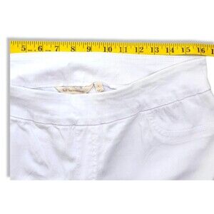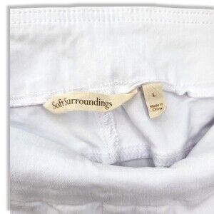 SOFT SURROUNDINGS WHITE Straight Leg/Ankle STRETCH Pull on PANTS SIZE Large with two back pockets in. Pants have a small hole on the thigh area of the pants as shown in photos, but in overall Good pre-owned condition! Please see photos for approximate measurements.