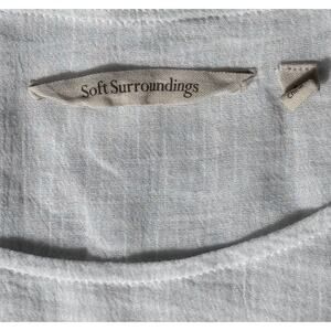 Soft Surroundings Women's White Gauzy Cotton Lightweight Blouse in size 3X is a classic and versatile piece perfect for any wardrobe. Made from comfortable cotton material, this blouse features a round neck, short sleeves, and a casual sleeve type. The solid white color and lightweight design make it ideal for a beach or summer-themed look. With its basic style and plus size option, this blouse from Soft Surroundings is a perfect choice for women looking for a chic and comfortable top for any occasion.