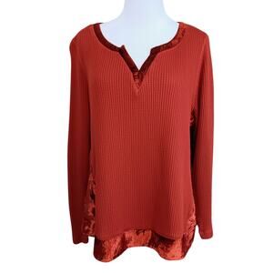 SOFT SURROUNDINGS Waffle Knit Velvet Top Shirt 1X Soft Artsy Casual Travel Work