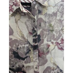 SOFT SURROUNDINGS Watercolor Magnolia Floral Long Button Down Shirt Sz M