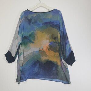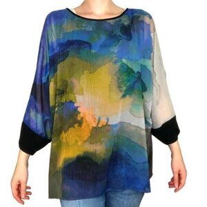 SOFT SURROUNDINGS Womens Blouse Watercolor Batwing Slit Sleeve Oversized Small