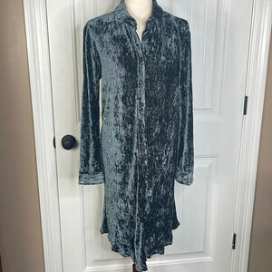 SOFT SURROUNDINGS Women's Maxime Soft Velvet Crinkle Shirt Dress Size PM/Blue