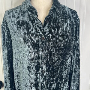 SOFT SURROUNDINGS Women's Maxime Soft Velvet Crinkle Shirt Dress Size PM. Front button closure. Polyester Spandex Blend. Stretchy fabric. Long sleeve.