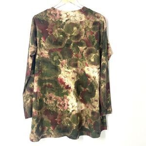 SOFT SURROUNDINGS Lightweight Floral Print Scoop Neck Pullover Sweater. Pretty Colors for Fall! Olive Green, Cranberry & Ivory. Perfect Transition Sweater for Fall. Women’s Size S