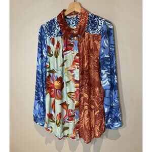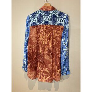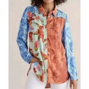 SOFT SURROUNDINGS Womens Small Top Tunic Floral Blouse Boho Long Sleeves Button