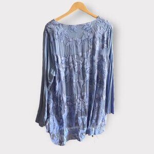 SOFT SURROUNDINGS Women’s Tunic Size 2X Heart Song Silk Embroidered Dusty Blue