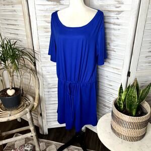 - SOFT SURROUNDINGS Women's XL Short Sleeve T Shirt Mini Dress Adjustable Waist Blue -