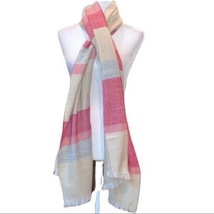 Isaac Mizrahi NWOT — soft scarf, wrap, shawl — herringbone pattern in cream/tan/pinks/gray — measures approximately 25” wide x 74” length