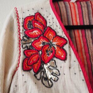SOFT Surroundings Mari Bolero Embellished Beaded Topper Jacket Size Small Cream