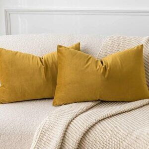MUDILY SOFT VELVET THROW PILLOW COVERS, YELLOW