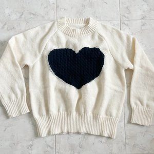 The cutest sweater ever with an adorable knit heart design. Material is incredibly soft and is perfect for winter activities and lounging. Can be dressed up or down with boots or a skirt as well as sweats.