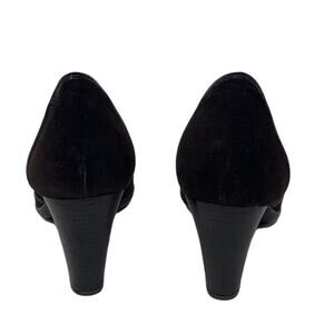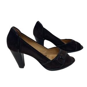 SOFT brown leather suede heels crossed peep toes shoes size 8.5