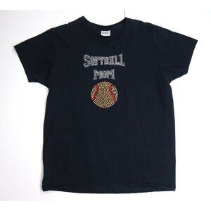 SOFTBALL MOM - WOMEN'S BLACK RHINESTONE EMBELLISHED T-SHIRT - SIZE M