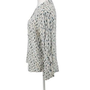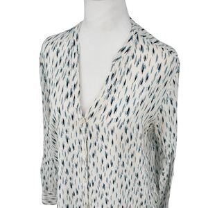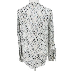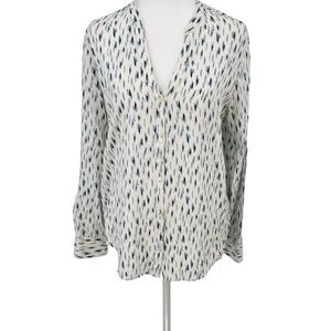 SOFT Joie Blouse Small White Blue Ikat Print Button Front Long Sleeve Rayon Top