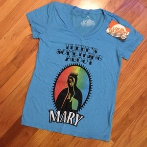 New from celeb favorite LA brand Local Celebrity comes the There’s Something About Mary tee. Soft cotton blend construction. Fitted style with v neck and colorful graphic. Includes LC sticker Sold out style. No trades