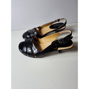 SOFTSPOTS Black Adjustable Slingback Buckle Heeled Sandals Comfort SZ 7W