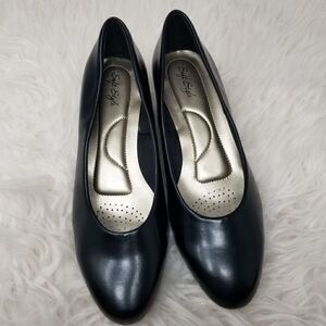 Like new condition. Black heels. 1.5" heel. Comfortable heel. Nice professional heel. Size 9.5. Simple, clean design.